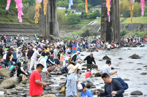 「犬飼名物どんこ釣り大会」は、毎年5月に、犬飼大橋下流で開催されます。