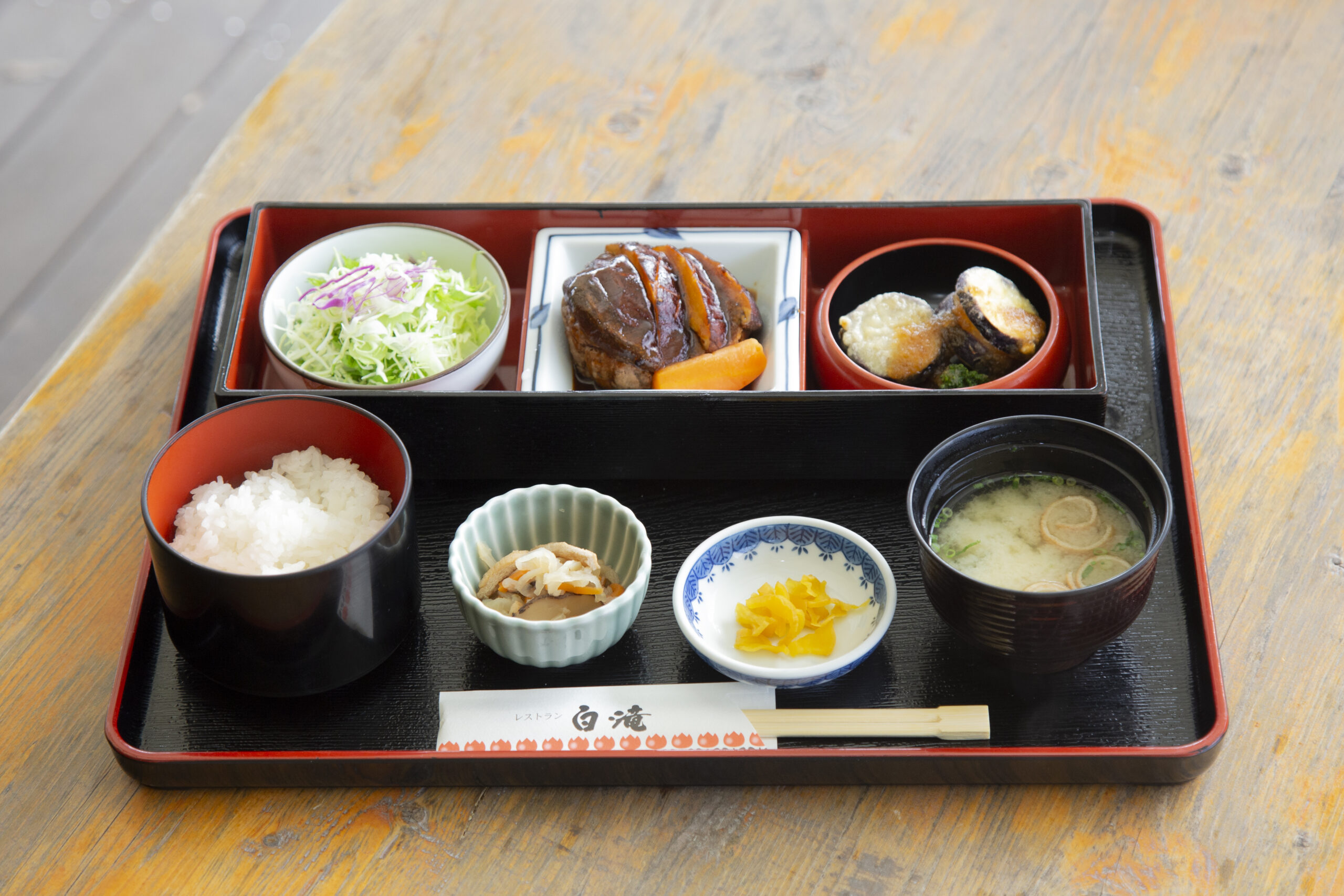 施設内のレストラン「白滝」には、地元特産乾しいたけグルメ「椎茸チーズフライ」!