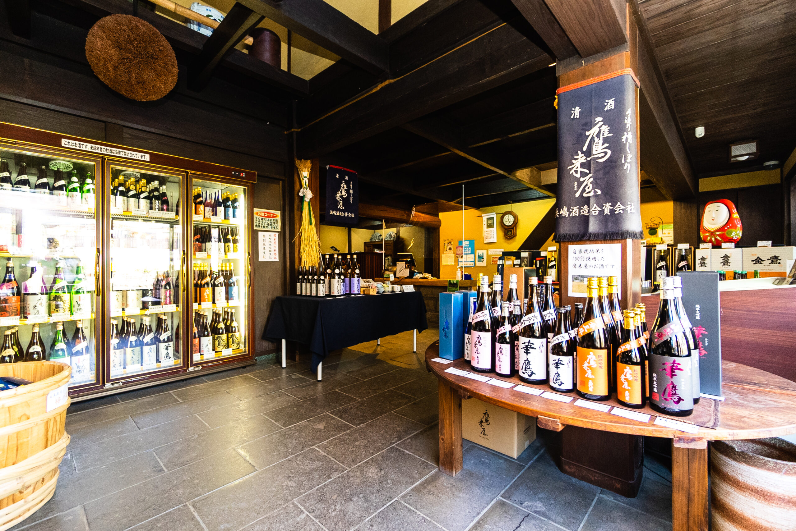 明治22年創業の老舗。棟上げ時に鷹が屋根にとまった事から屋号を『鷹来屋』とした。15 ヘクタールある田んぼで、日本酒として生まれ変わる酒米を自家栽培。その米を原料とし、蔵元自らが杜氏となり、昔ながらの槽(ふな)しぼりでお酒をしぼっている。徹底した商品管理のもと、生酒のまま一夏越して熟成された夏越し特別純米山廃酒。落ち着きのある柔らかい味わいを楽しんでください。