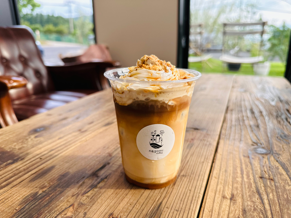 犬飼町にある自家焙煎コーヒーカフェ「nagomicoffee」。メニューも大人から子どもまで楽しめるラインナップ。店内には、コーヒーに合う、程よく甘い焼き菓子も置かれていて、一緒に楽しむことができます。また、お店の象徴であるステンドグラスや、店内の家具にもこだわっており、ゆっくり過ごせる空間となっています。淹れたてのコーヒーを飲めるだけでなく、ドリップバッグや焙煎豆も販売しています。ドライブや、ちょっとしたブレイクに、おすすめのスポットです