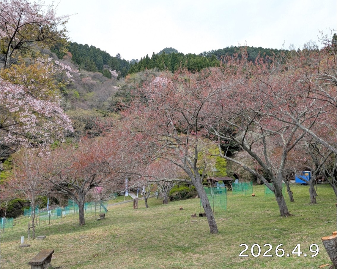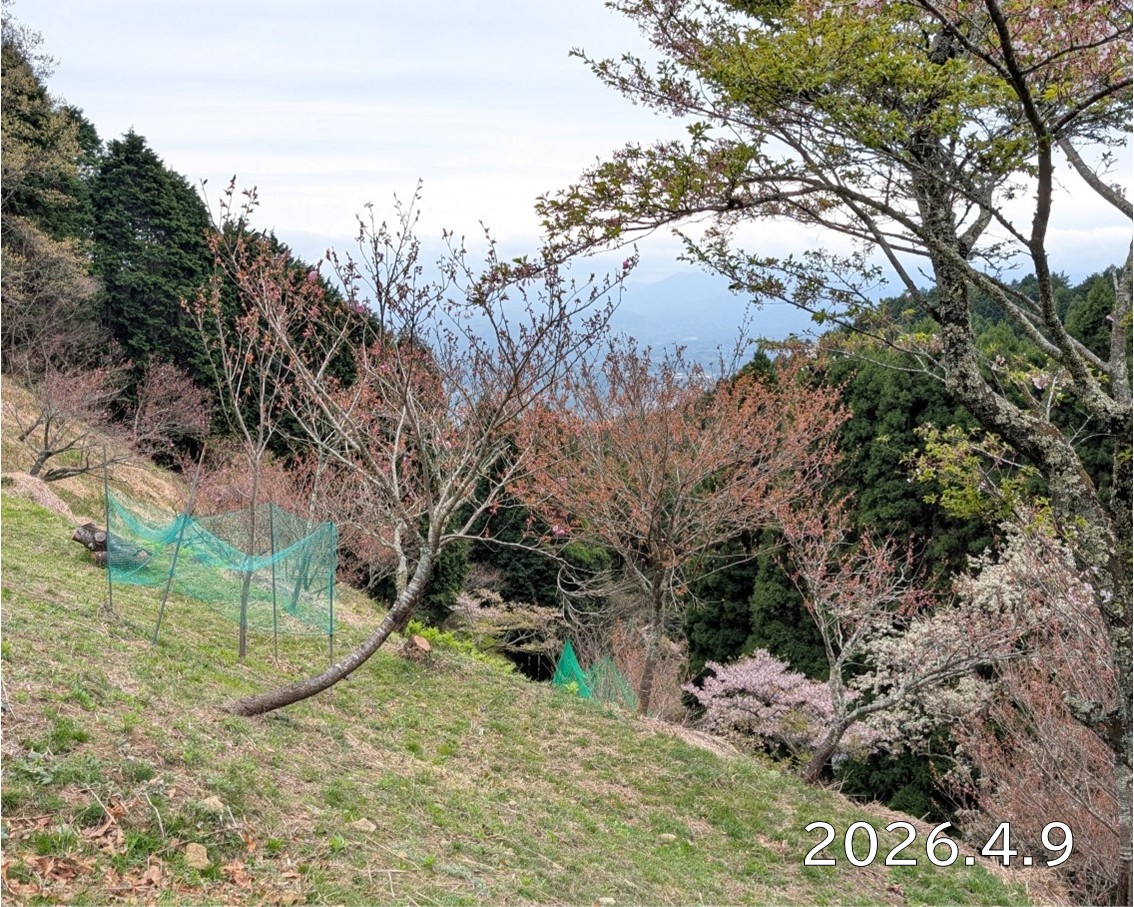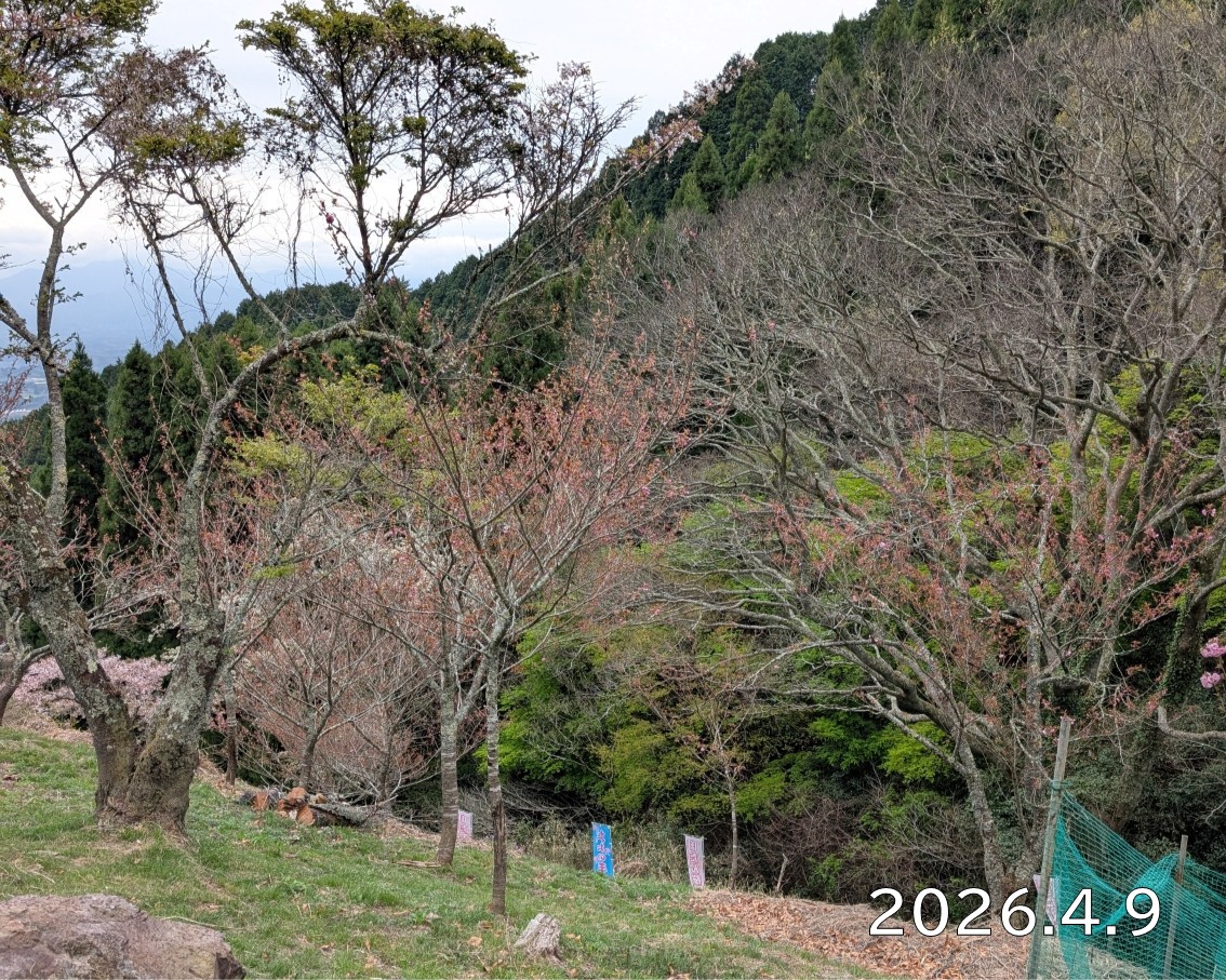 豊後大野市大野町にある「えぼし公園」のボタン桜。 現在、1分咲きくらいです。 見頃が待ち遠しいですね。