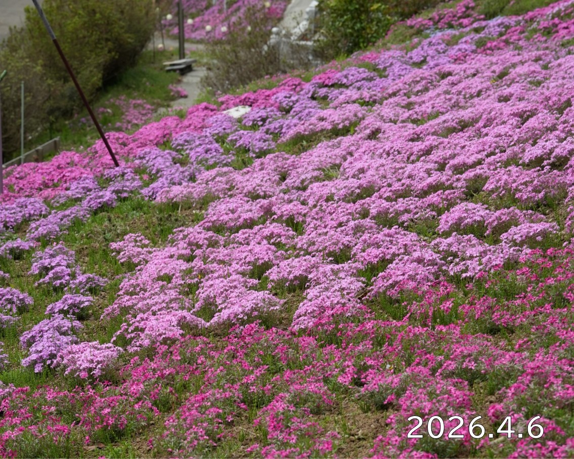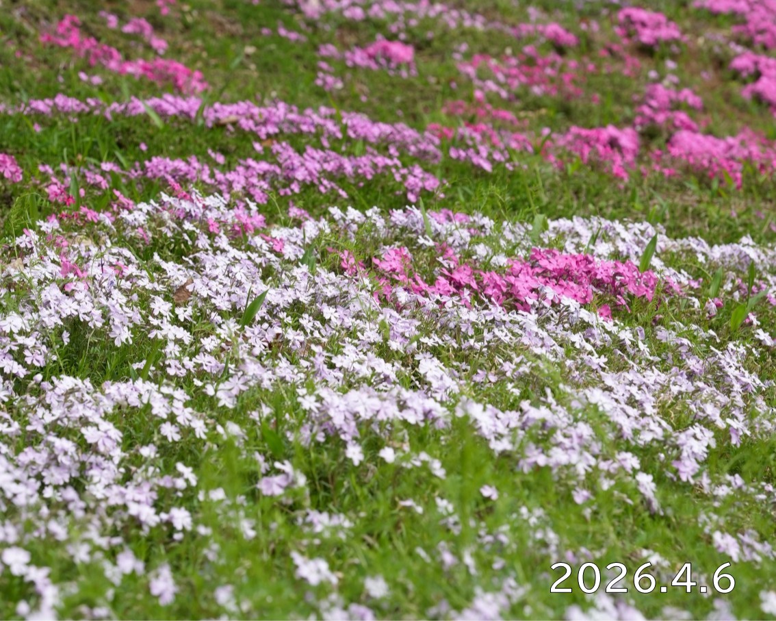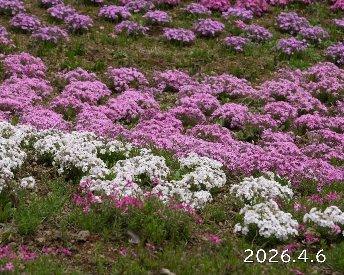 豊後大野市大野町「足立直芝桜園」のシバザクラが咲いています。