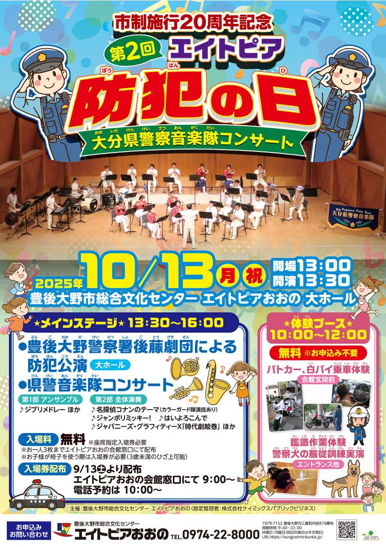 大ホールでは大分県警察音楽隊コンサートや豊後大野警察署の後藤劇団による防犯対策の寸劇があります。