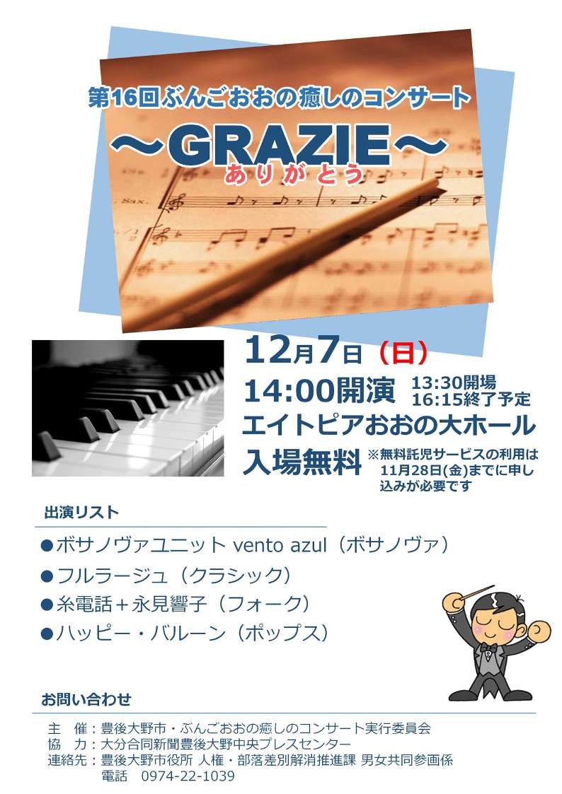 豊後大野市三重町のエイトピアおおので「ぶんごおおの癒しのコンサート」が開催されます。