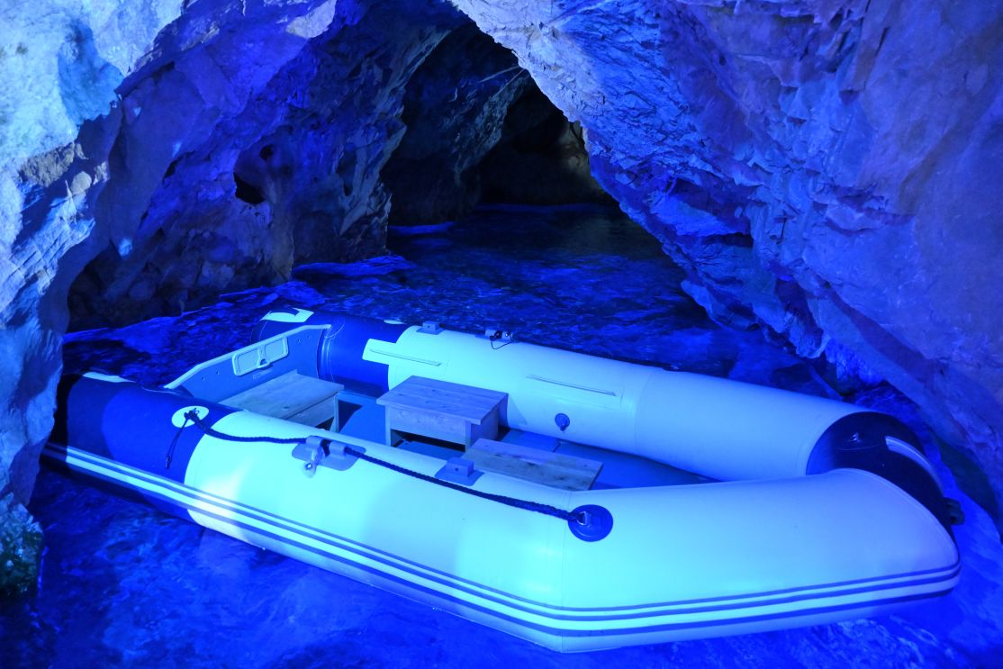 水中洞から園内の蛍川(白山川)をゴムボートに乗って遊覧。スタッフによるガイドさんが一緒に案内して鍾乳洞の成り立ちなど説明してくれます。着替えは不要でそのままボートに乗り込めます。