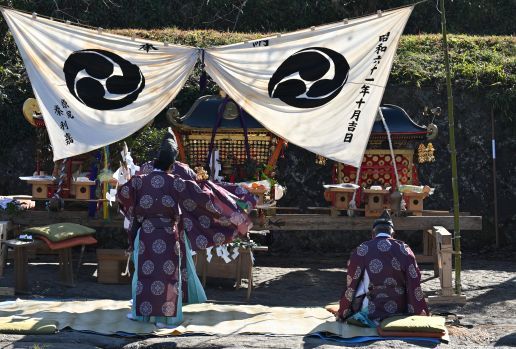 2025年12月6日、大分県豊後大野市緒方町原尻の滝周辺で「緒方三社川越しまつり」が開催されました。