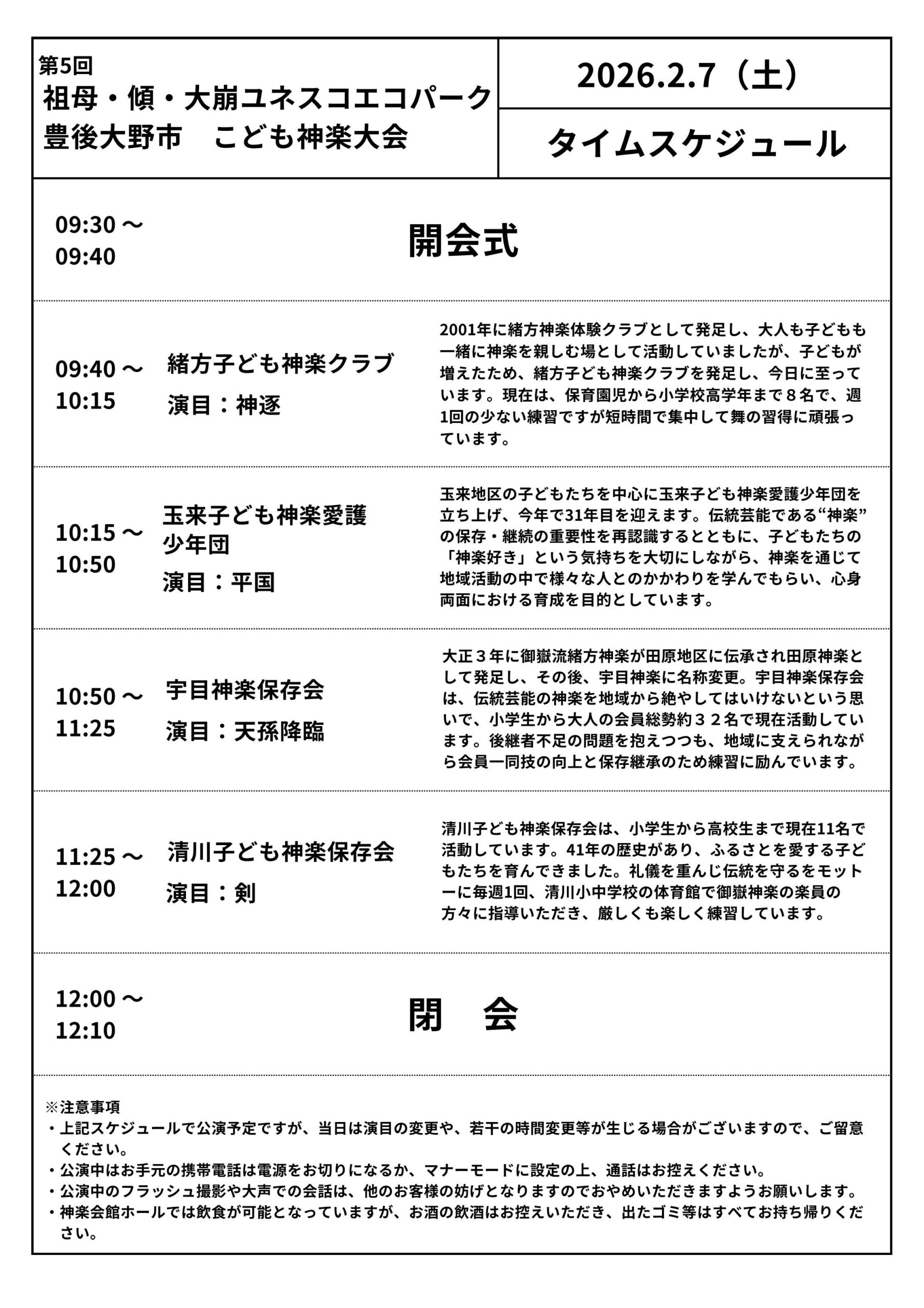 今年は豊後大野市内こども神楽2団体に加え、佐伯市と竹田市のこども神楽団体も参加します。