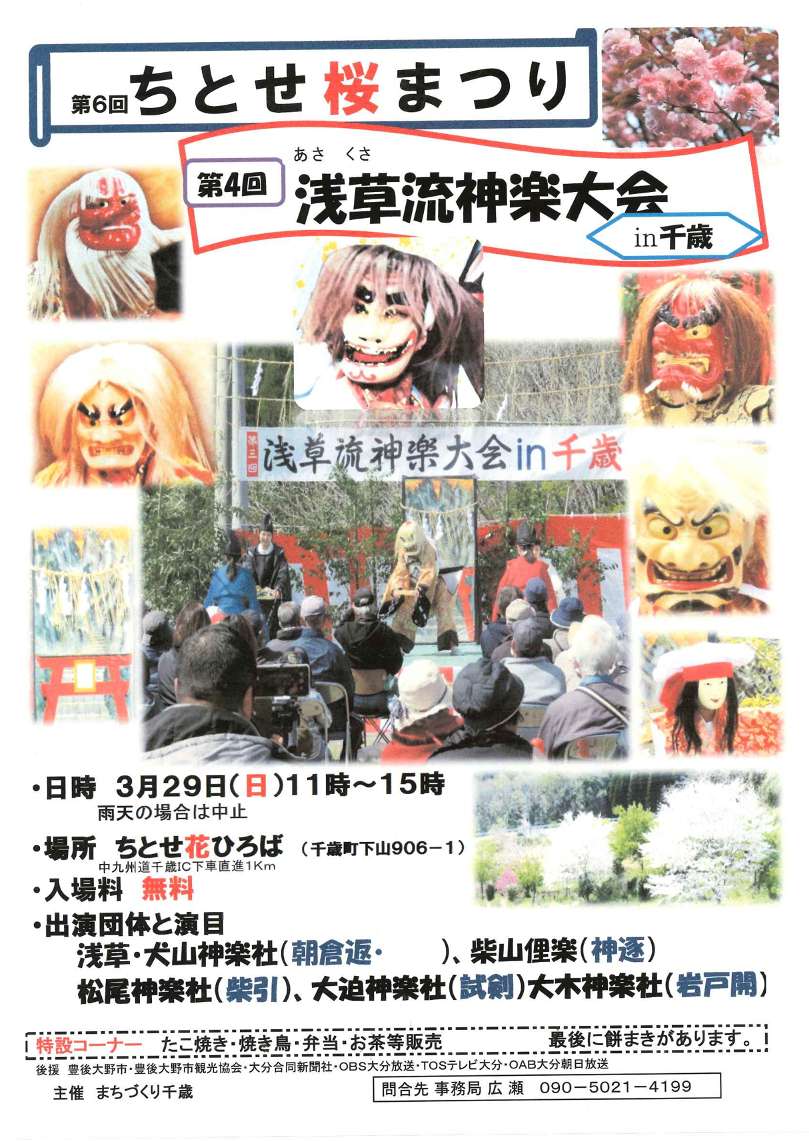 大分県豊後大野市千歳町のちとせ花ひろばで、まちづくり千歳が主催する「ちとせ桜まつり」が開催されます。