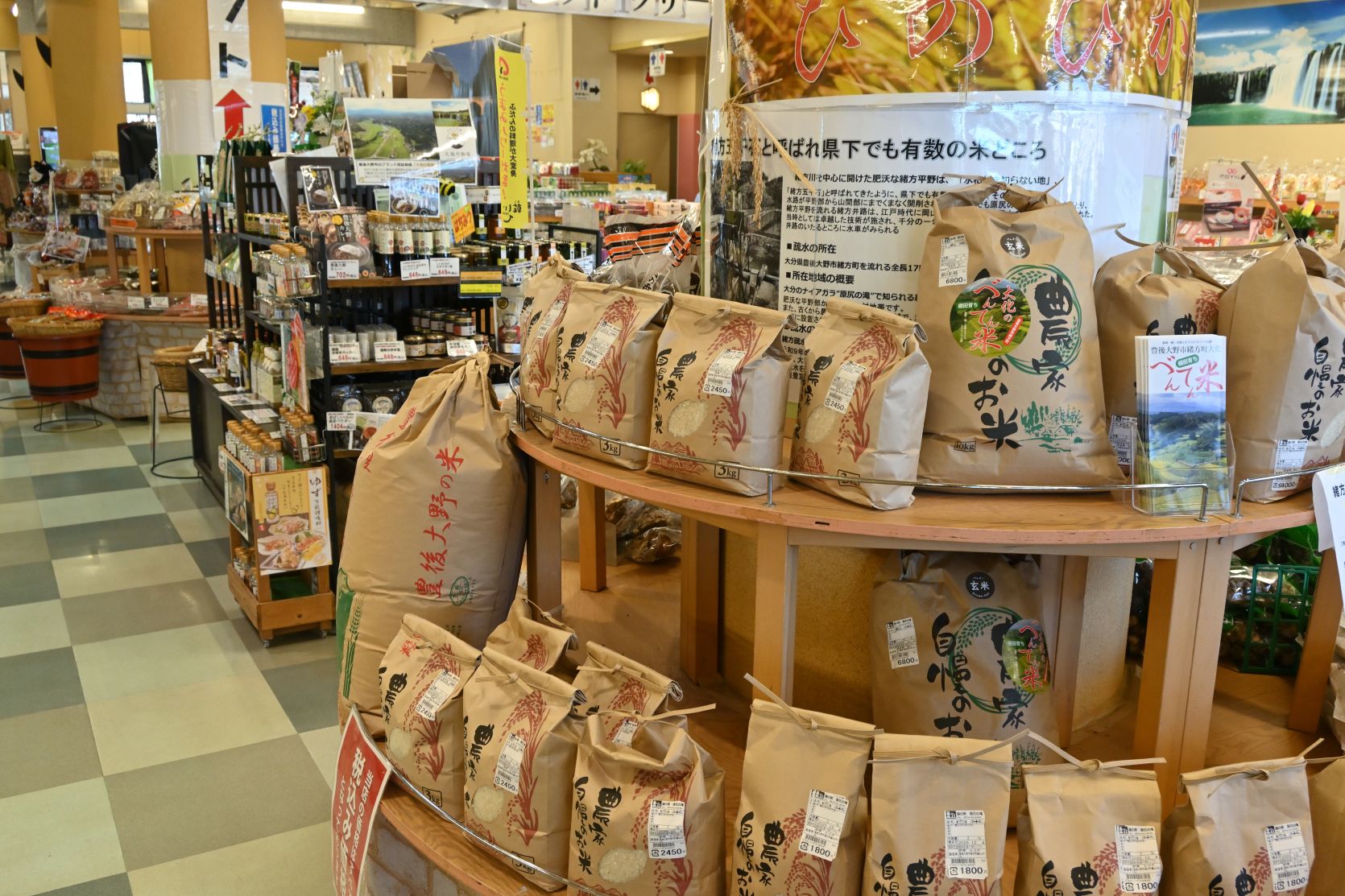 大分県豊後大野市緒方町にある道の駅原尻の滝。道の駅原尻の滝には、新鮮な農産物や手作りのお菓子や加工品など、お土産品も多数そろえていますよ。