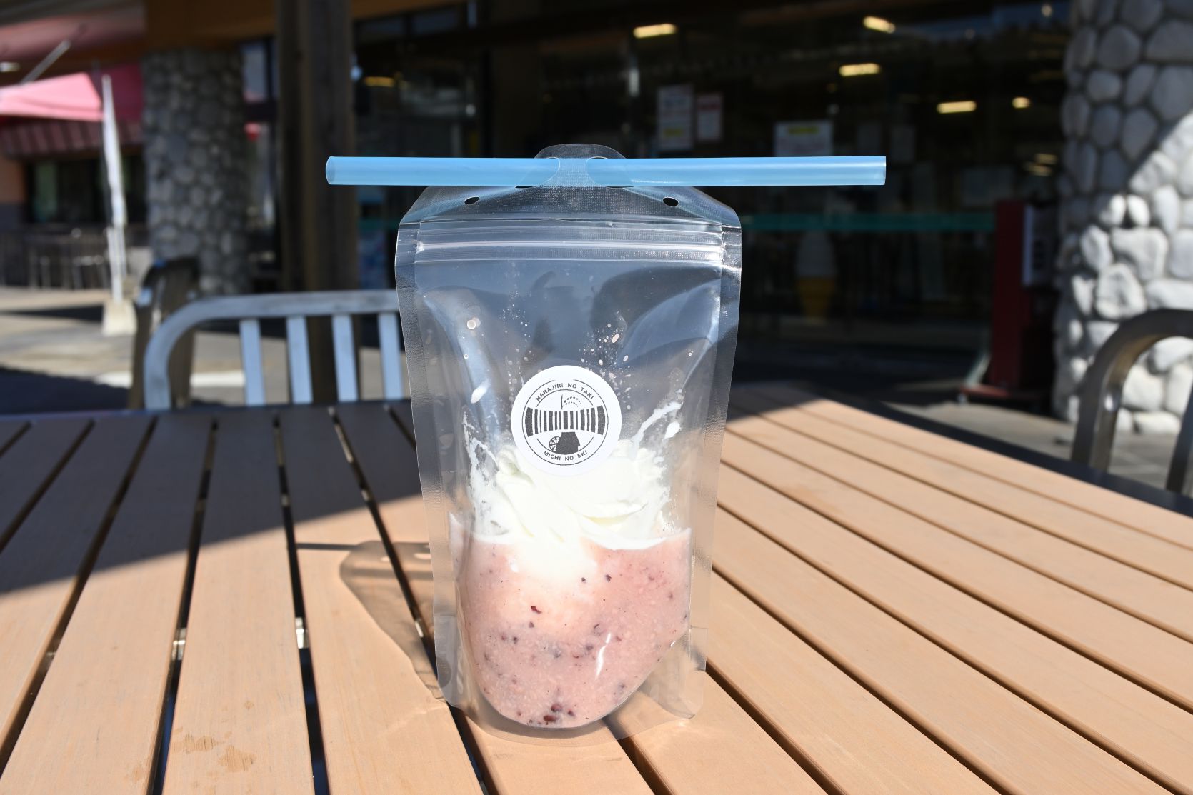 ウジャマー農場さんが丹精込めて育てた有機認証黒米の甘酒とミルクソフトをパックでもみもみして食べる。甘酒の自然な甘みが満足。