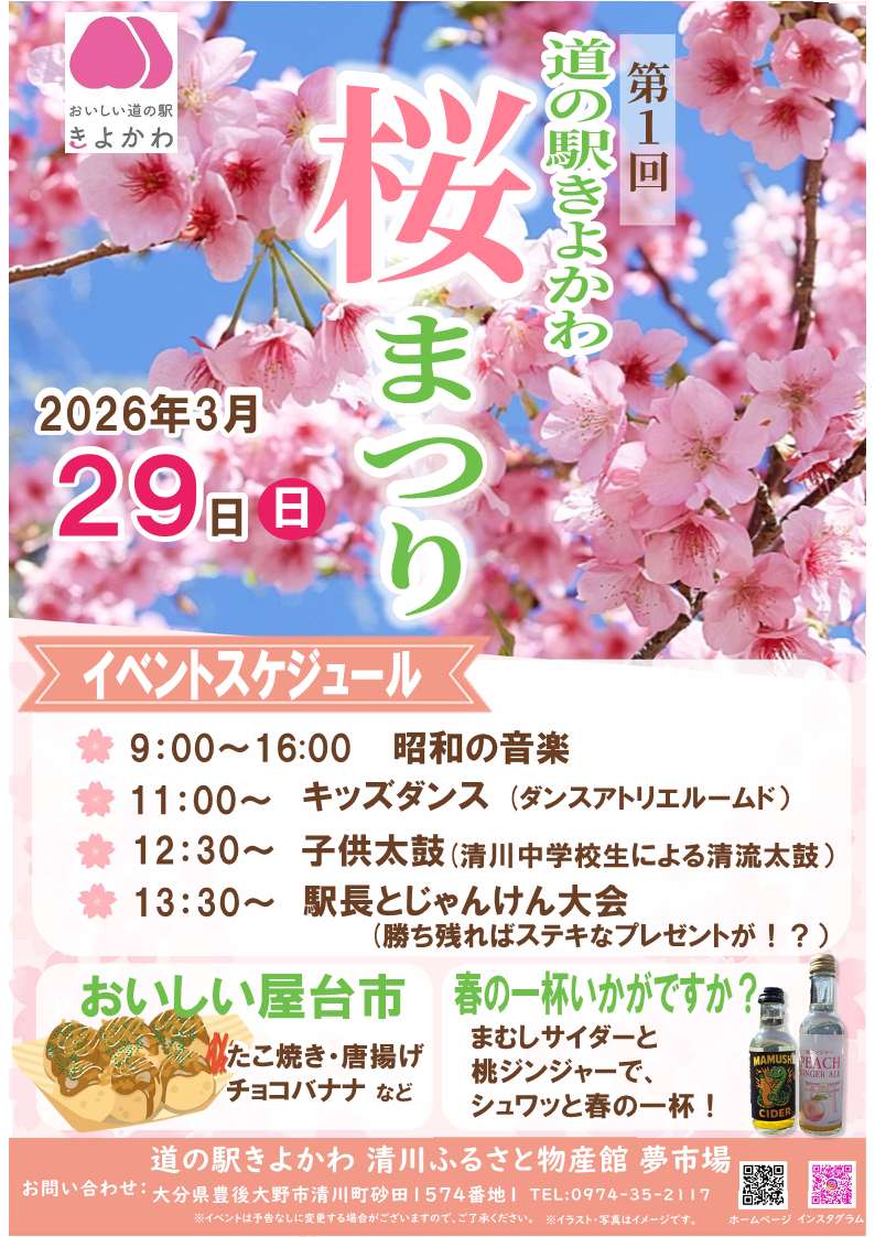 大分県豊後大野市清川町の道の駅きよかわで「桜まつり」が開催されます。