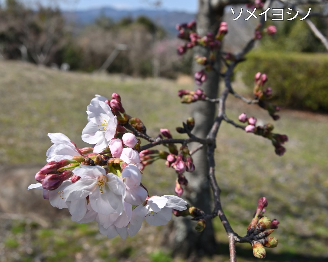 大分県豊後大野市千歳町にある「白鹿山」にある桜(ソメイヨシノ)。 白鹿山妙覚寺からの風景もよく、桜と農村風景を見ることができます。