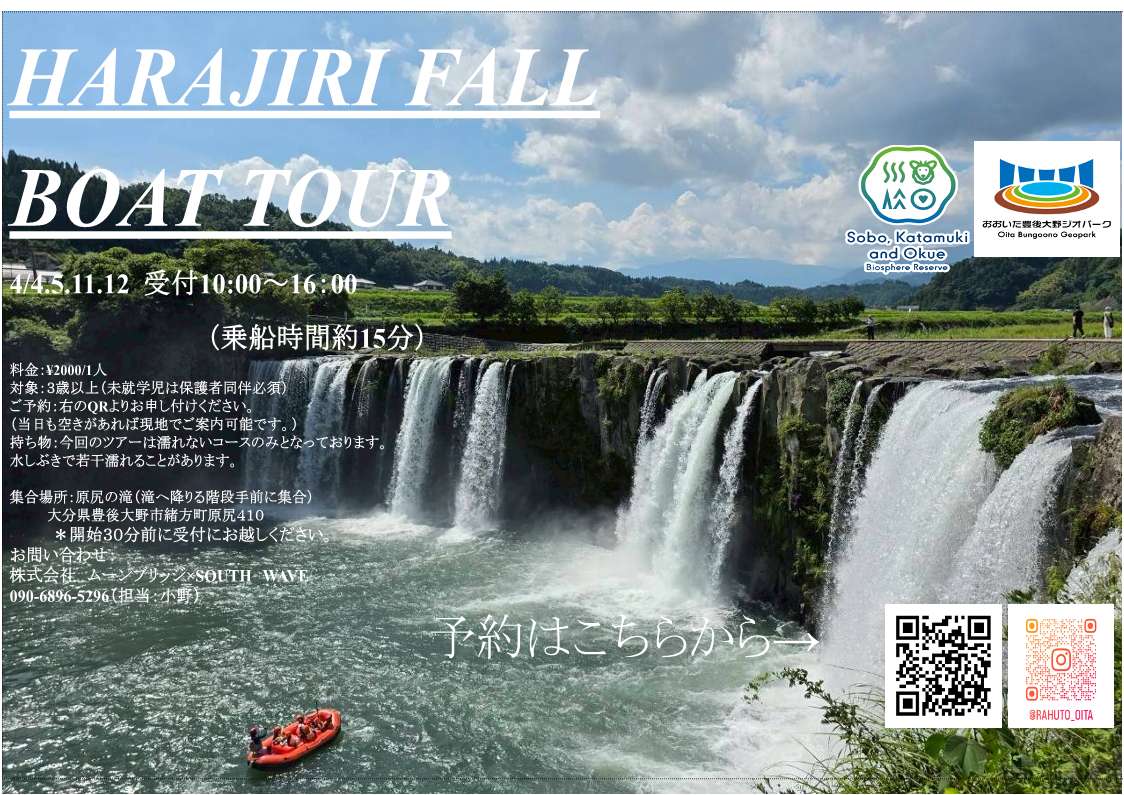 ▶各日10:00~16:00(乗船時間約15分) - 【場所】原尻の滝 (豊後大野市緒方町原尻410)