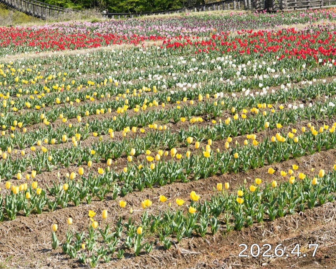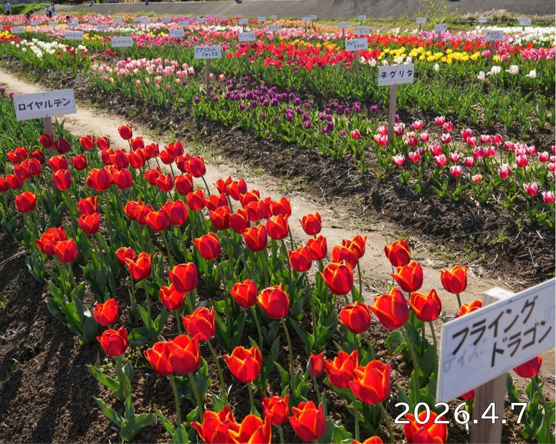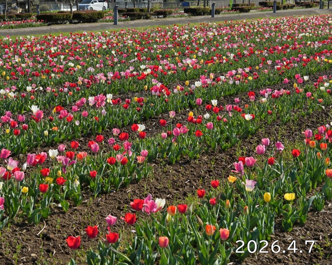 見頃を迎えています。現在チューリップフェスタ開催中。期間中の土日は様々なイベントが開催されます。 ※期間中の土日は臨時駐車場をご利用ください。